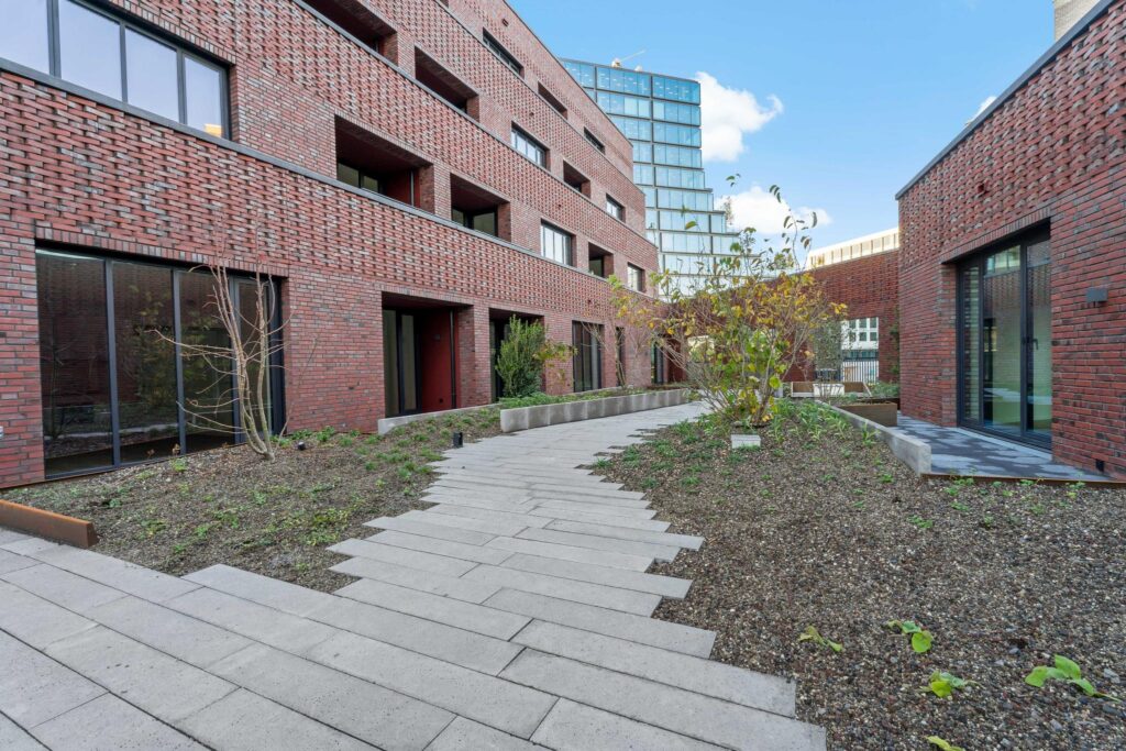 Een gemeenschappelijke daktuin verbindt de twee woongebouwen van The Newton, een plek waar bewoners kunnen genieten van de zon en van de kleurrijke tuin vol bomen en planten. En wat denk je van faciliteiten zoals pakketbussen en parkeermogelijkheden voor auto, fiets of scooter? Meld je dan nu aan op de projectwebsite om op de hoogte te blijven van deze geheime oase van groen, midden in Amsterdam.