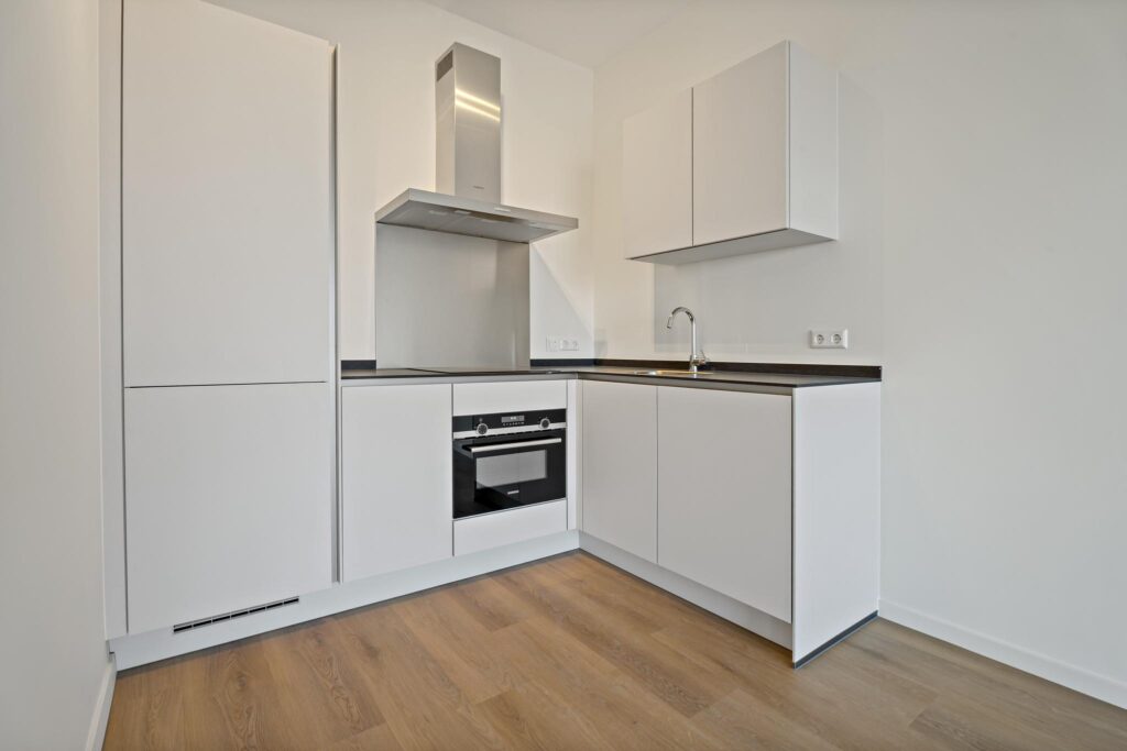 – Hoog afwerkingsniveau met vloer- en wandafwerking, stompe deuren, natuurstenen vensterbanken, gordijnrails, verlichting in badkamer, toilet en keuken