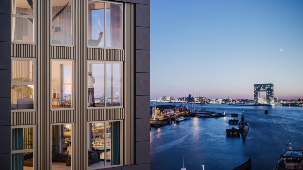 NDSM South Dock is located right on the water and consists of several buildings. The 18-storey tower and large windows give NDSM South Dock a unique appearance. Metropolitan and open, robust and accessible. The ground floor of the tower is reserved for commercial activities: offices, shops and catering establishments. Above it will be flats. NDSM South Dock also stands for convenience. There is an underground car park and thanks to the bringme service in the lobby, you will never miss a parcel again.