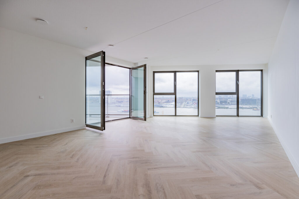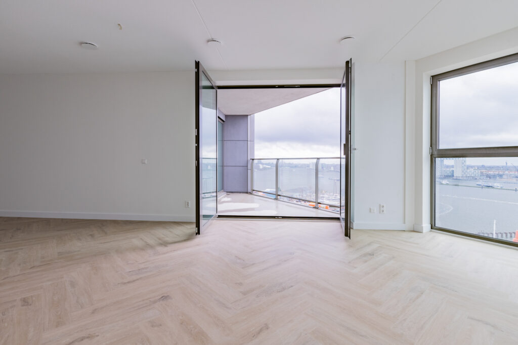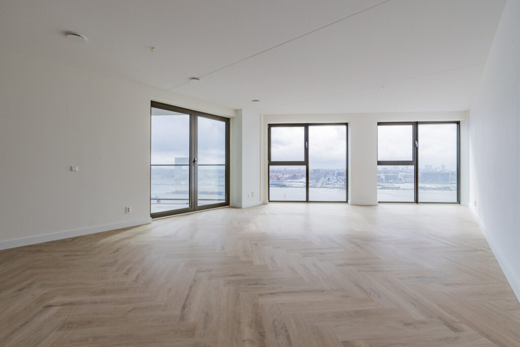 NDSM South Dock offers space for more than two hundred flats. From two-room flats of around 62 m2 to five-room flats of around 129 m2. The large windows bring in daylight, while the outdoor spaces – a terrace or balcony – give a sense of space. The flats are cleverly arranged, making best use of the available space. Finishing is luxurious and done with great attention. The bathroom and kitchen are fully equipped.