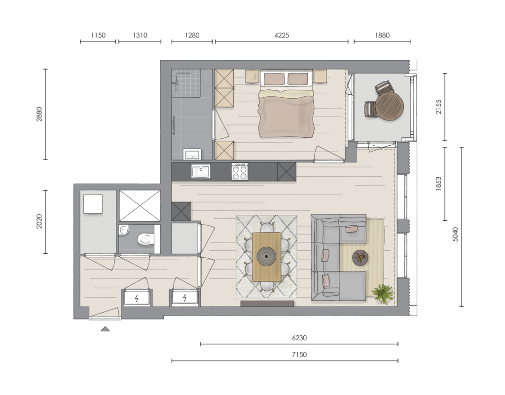 Dit tussenappartement kenmerkt zich door een strakke indeling, wat een zee aan woonruimte oplevert. Wat dacht je bijvoorbeeld van een woonkamer/keuken van ruim 30 vierkante meter? Hier kun je met gemak een grote hoekbank neerzetten of een gedeelte inrichten als thuiswerkplek. De slaapkamer is met 12 vierkante meter ook lekker ruim en biedt bovendien direct toegang tot de badkamer.