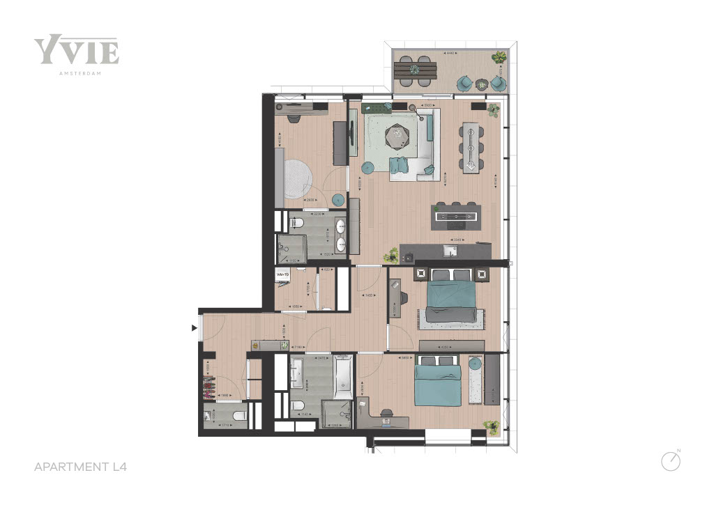 De 176 huurappartementen in Yvie bevinden zich op de verdiepingen 11 tot en met 29. Welk type je ook kiest, elk appartement heeft minimaal één privébalkon met een prachtig uitzicht over de stad en/of het IJ. Sommige appartementen hebben zelfs een loggia. Alle appartementen worden volledig afgewerkt opgeleverd.