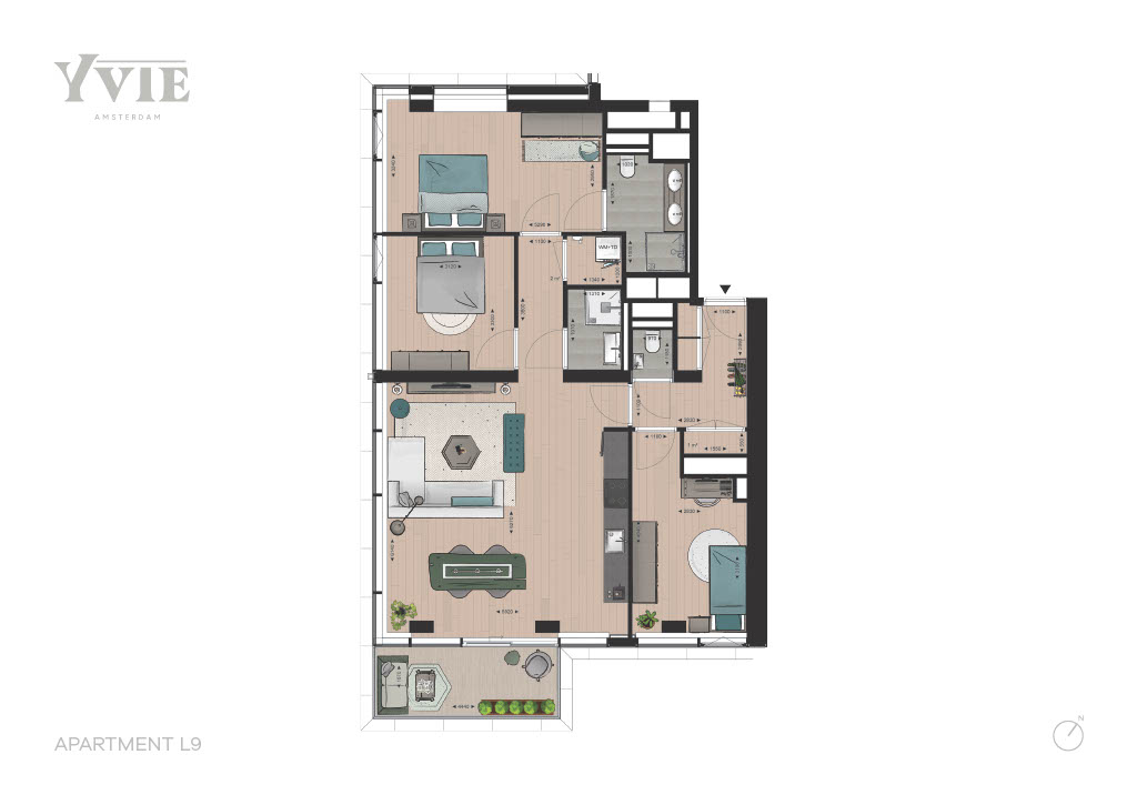 De 176 huurappartementen in Yvie bevinden zich op de verdiepingen 11 tot en met 29. Welk type je ook kiest, elk appartement heeft minimaal één privébalkon met een prachtig uitzicht over de stad en/of het IJ. Sommige appartementen hebben zelfs een loggia. Alle appartementen worden volledig afgewerkt opgeleverd.
