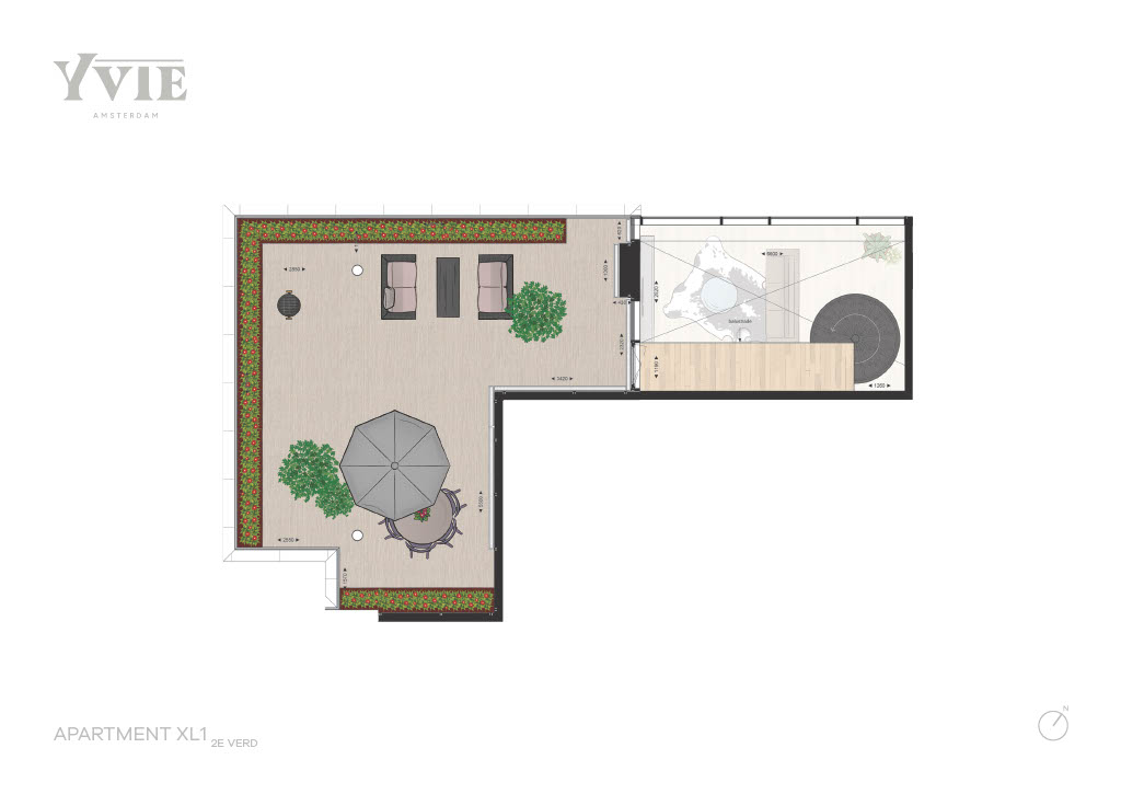Er zijn vier penthouses op de 30e verdieping, één op elke hoek van het gebouw. Bij binnenkomst valt meteen de dubbele verdiepingshoogte op. Wauw! De enorme ramen in de woonkamer geven je echt een adembenemend uitzicht over Amsterdam! Via de designtrap kun je nog een stap hoger. Vanuit de loft op de 31e verdieping stap je zo het enorme privéterras op. Het terras is gedeeltelijk overdekt, dus je kunt er 365 dagen per jaar van genieten.