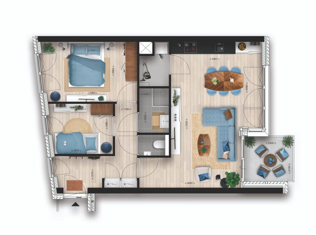 Van compacte appartementen van 50 m² tot luxe penthouses van bijna 200 m². Van balkon tot dakterras. Met een zeer grote variatie aan appartementstypen is de keuze aan jou. Jouw appartement is luxe afgewerkt, voorzien van een designkeuken met inbouwapparatuur, een comfortabele badkamer en zelfs de vloer hebben we al voor je gelegd. Jij hoeft alleen nog je koffers in te pakken!