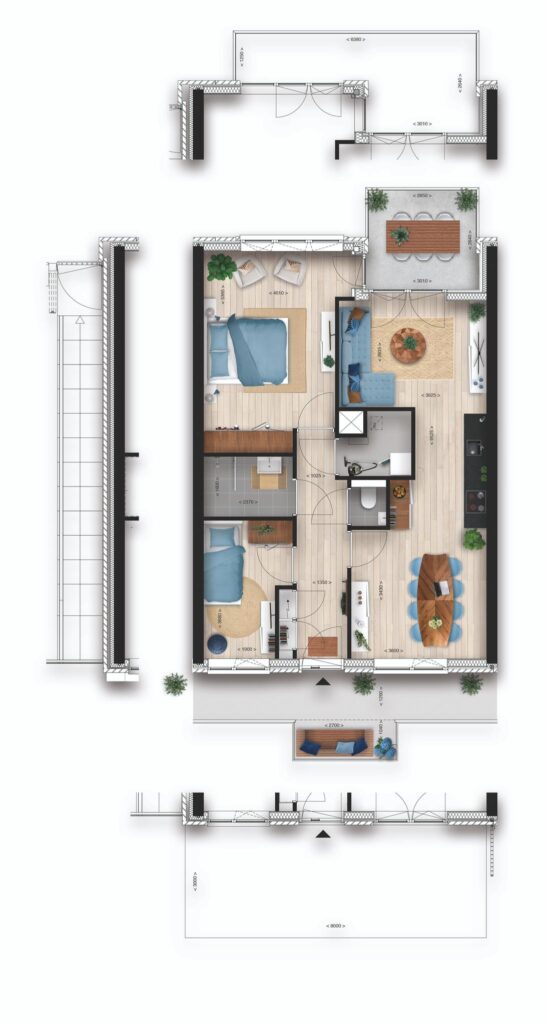Van compacte appartementen van 50 m² tot luxe penthouses van bijna 200 m². Van balkon tot dakterras. Met een zeer grote variatie aan appartementstypen is de keuze aan jou. Jouw appartement is luxe afgewerkt, voorzien van een designkeuken met inbouwapparatuur, een comfortabele badkamer en zelfs de vloer hebben we al voor je gelegd. Jij hoeft alleen nog je koffers in te pakken!