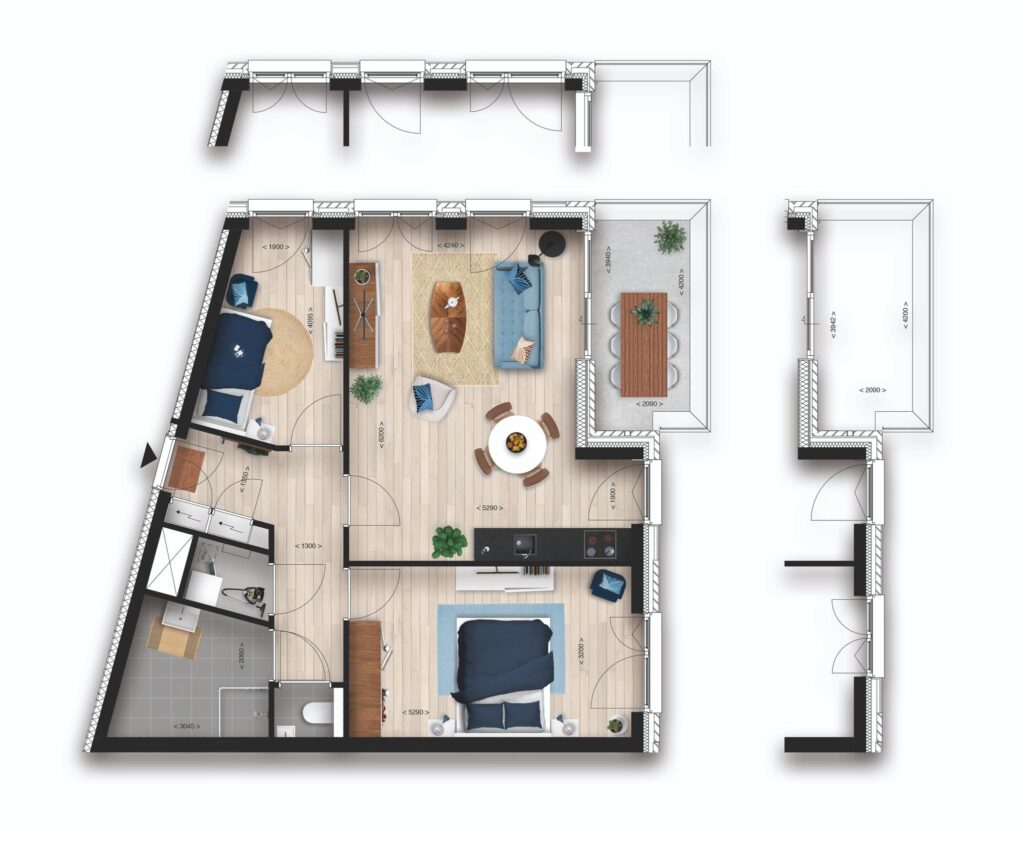 Van compacte appartementen van 50 m² tot luxe penthouses van bijna 200 m². Van balkon tot dakterras. Met een zeer grote variatie aan appartementstypen is de keuze aan jou. Jouw appartement is luxe afgewerkt, voorzien van een designkeuken met inbouwapparatuur, een comfortabele badkamer en zelfs de vloer hebben we al voor je gelegd. Jij hoeft alleen nog je koffers in te pakken!
