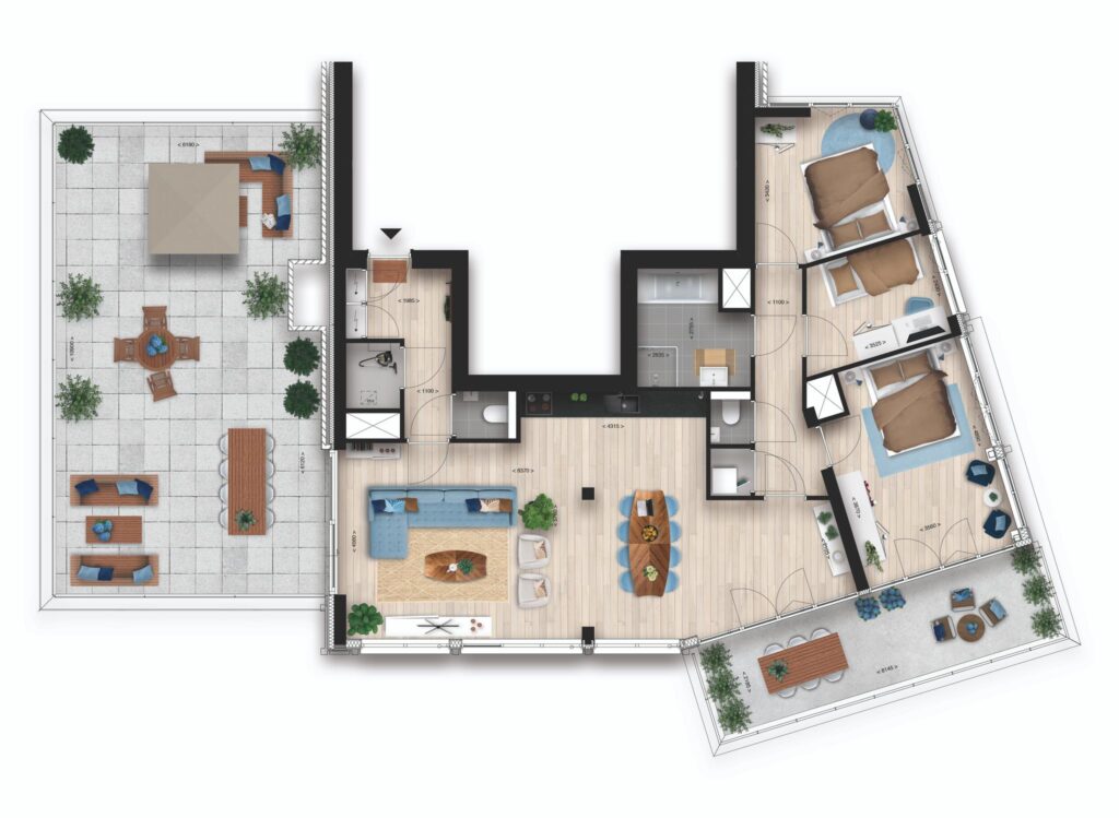 Van compacte appartementen van 50 m² tot luxe penthouses van bijna 200 m². Van balkon tot dakterras. Met een zeer grote variatie aan appartementstypen is de keuze aan jou. Jouw appartement is luxe afgewerkt, voorzien van een designkeuken met inbouwapparatuur, een comfortabele badkamer en zelfs de vloer hebben we al voor je gelegd. Jij hoeft alleen nog je koffers in te pakken!