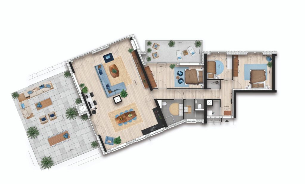 Van compacte appartementen van 50 m² tot luxe penthouses van bijna 200 m². Van balkon tot dakterras. Met een zeer grote variatie aan appartementstypen is de keuze aan jou. Jouw appartement is luxe afgewerkt, voorzien van een designkeuken met inbouwapparatuur, een comfortabele badkamer en zelfs de vloer hebben we al voor je gelegd. Jij hoeft alleen nog je koffers in te pakken!