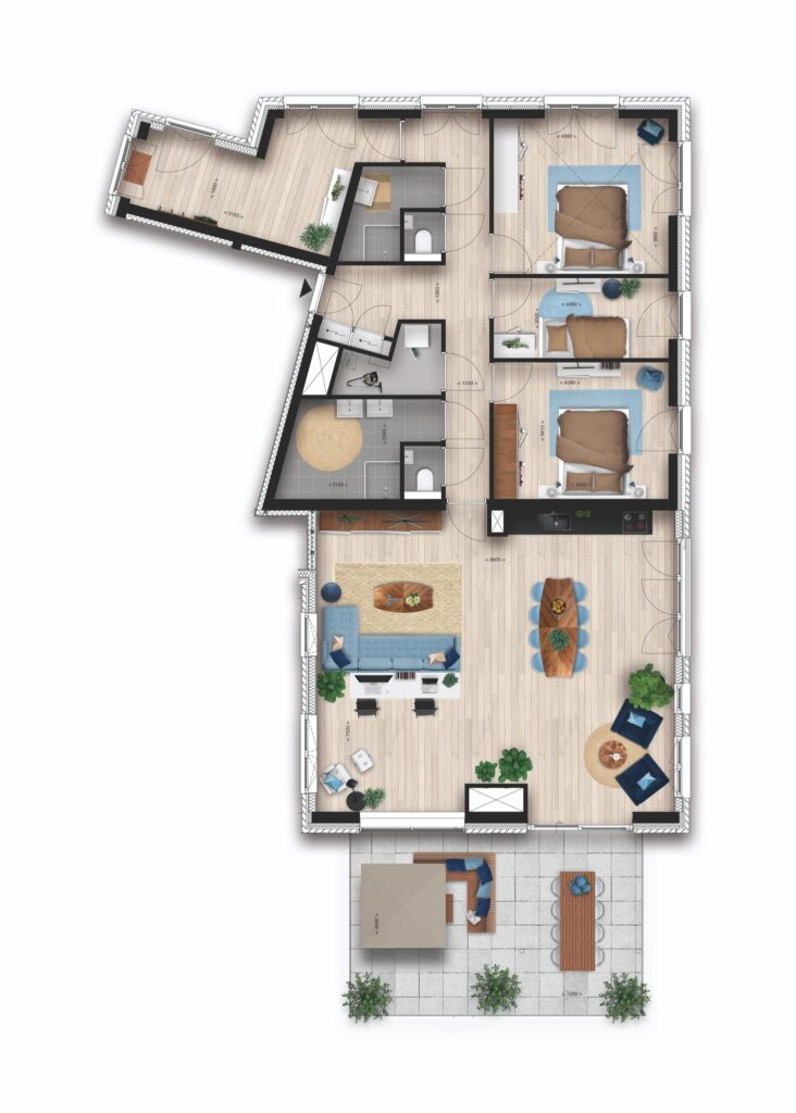Van compacte appartementen van 50 m² tot luxe penthouses van bijna 200 m². Van balkon tot dakterras. Met een zeer grote variatie aan appartementstypen is de keuze aan jou. Jouw appartement is luxe afgewerkt, voorzien van een designkeuken met inbouwapparatuur, een comfortabele badkamer en zelfs de vloer hebben we al voor je gelegd. Jij hoeft alleen nog je koffers in te pakken!