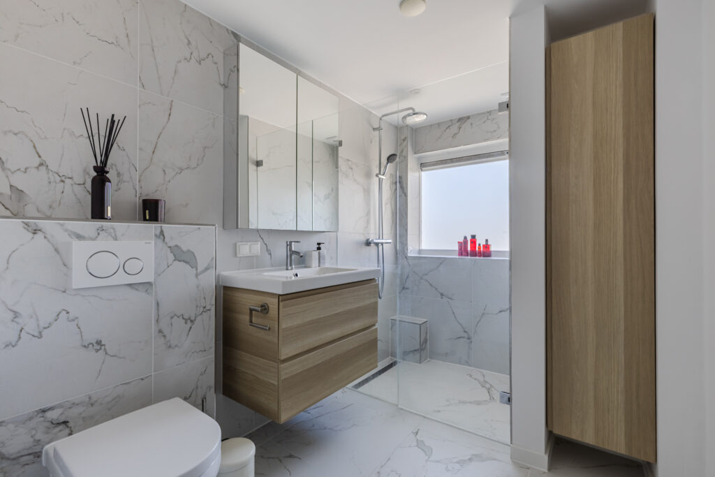 – Luxe afwerking met o.a. elektrische haard, stalen deuren en marmerlook badkamer;