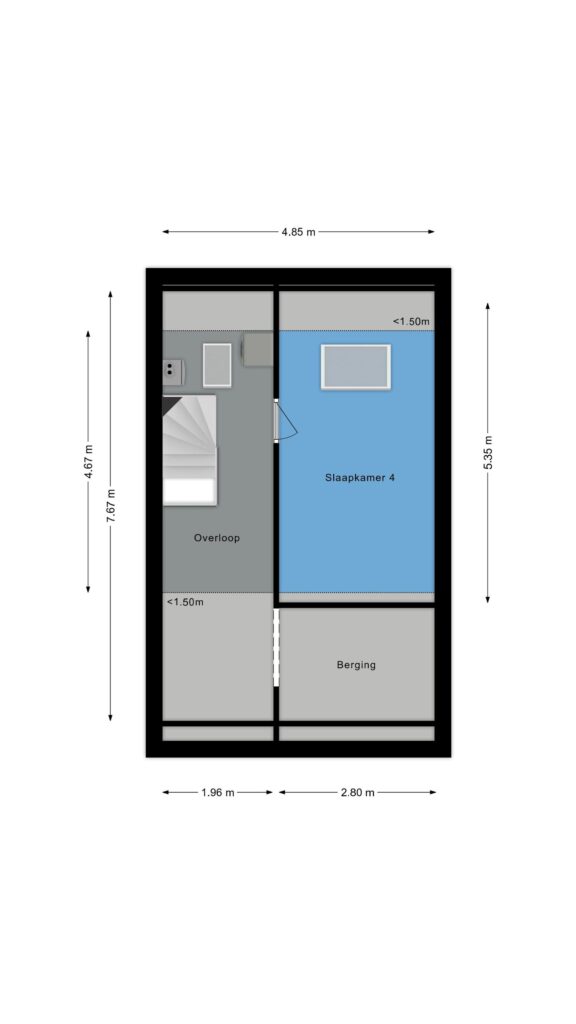 De zolder is royaal en voorzien van voldoende bergruimte. Op de overloop is de wasmachine aansluiting en hangt de cv-ketel. De vierde slaapkamer is hier te vinden en is zeer ruim.