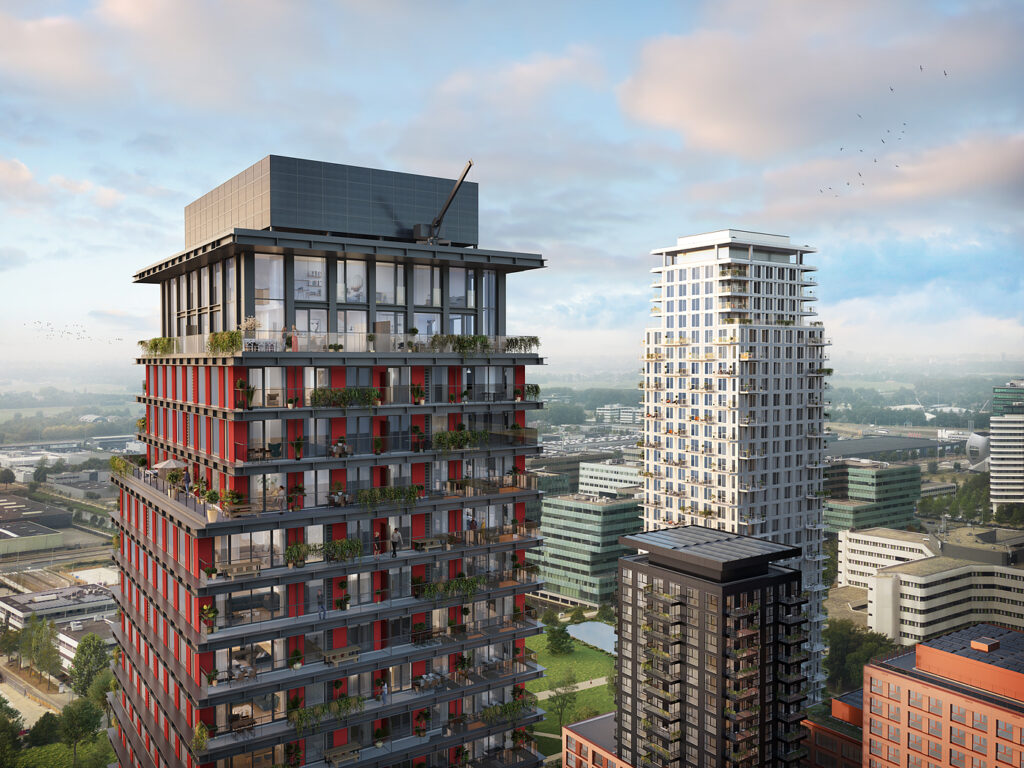 Scarlet is de nieuwste, robuuste woontoren in Amsterdam, met 93 luxe koopappartementen, waaronder stijlvolle City Apartments, ruime Grand Apartments, exclusieve Penthouses en unieke 2-laagse City Houses. Met een gemiddeld woonoppervlak van 95,4 m² en een oplevering vanaf december 2025, is dit jouw kans om te wonen in comfort, luxe en duurzaamheid.