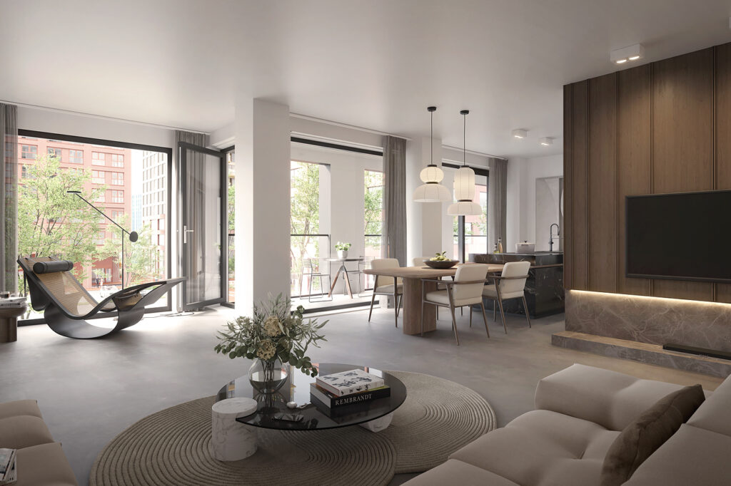 De City Houses, gelegen op de begane grond, combineren moderne architectuur met hoogwaardige afwerking en duurzaamheid. Met woonoppervlaktes van circa 99 tot 113 m², twee of drie slaapkamers en een zonnige zuidelijke oriëntatie zijn deze woningen ideaal voor zonliefhebbers. De 2-laagse indeling met mezzanine zorgt voor een eigentijdse en ruimtelijke woonervaring.