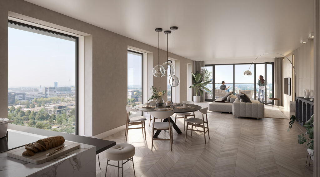 Benieuwd hoe dit indrukwekkende project vorm krijgt? Loop binnen in de SPOTHUB en ontdek alle details over de appartementen en de groene omgeving van Scarlet.