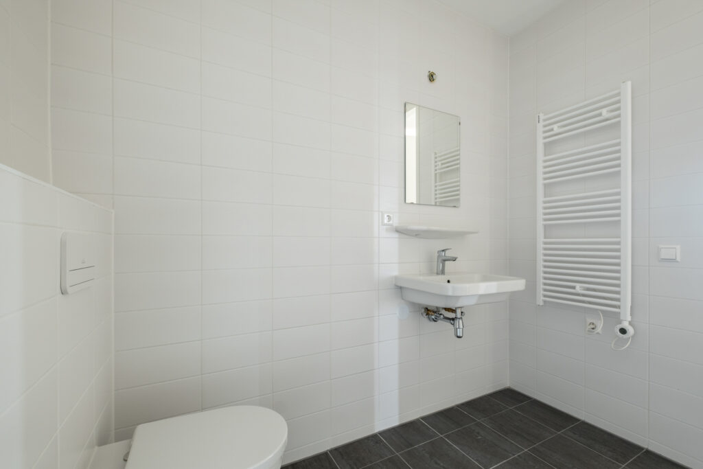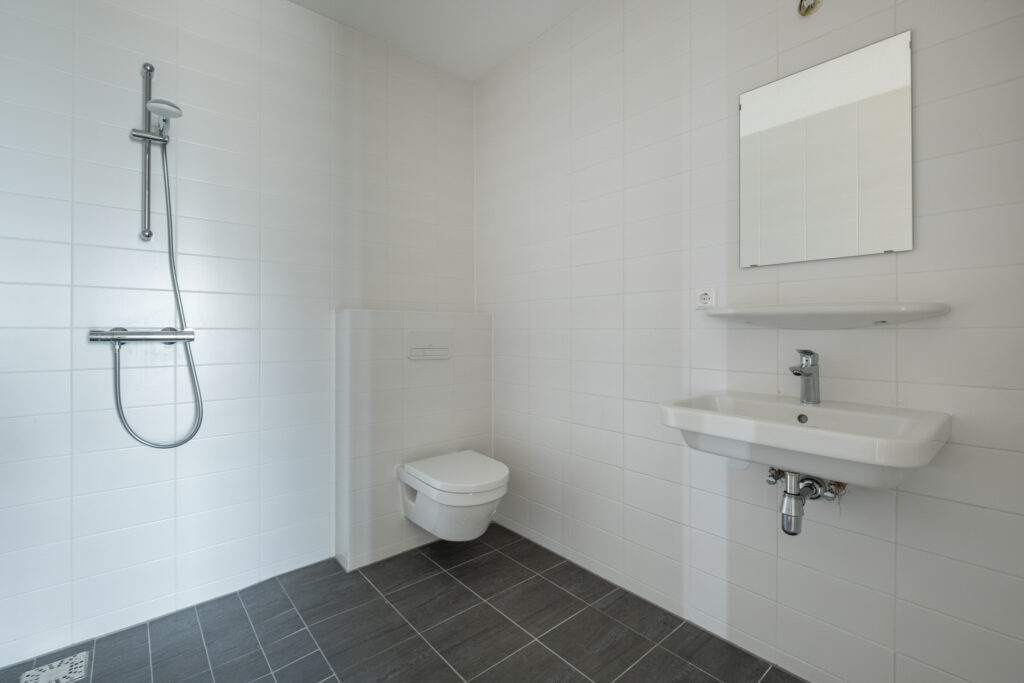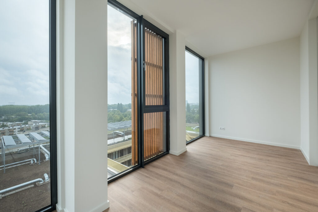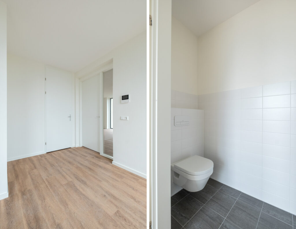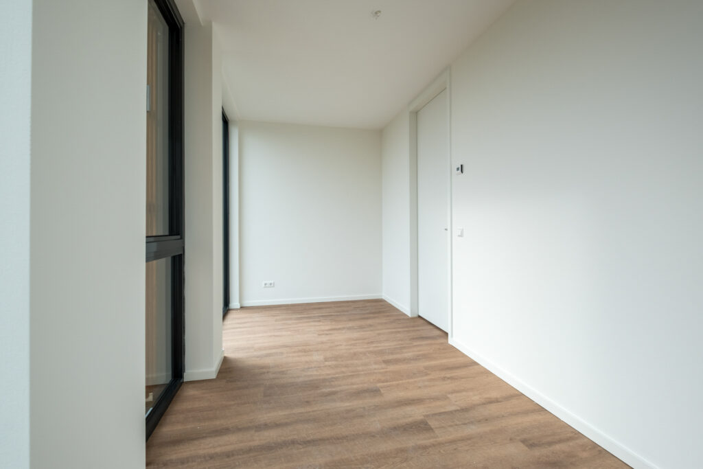 De woonkamer geeft je ook toegang tot een extra slaap-, hobby-, of werkkamer. Dat maakt dit appartement perfect voor een gezin of een koppel dat graag een separate werkkamer heeft. Als je rondkijkt in je eigen heerlijke woonkamer valt je nog een deur op. Deze deur brengt jou naar een hal met vier deuren. Hier vind je een ideale berging, de ruime badkamer, een meterkast en je eigen master bedroom. In de slaapkamer kun je makkelijk een groot bed kwijt en heb je genoeg ruimte voor kasten. Elke woning is voorzien van een eiken look PVC vloer en de wanden zijn afgewerkt.