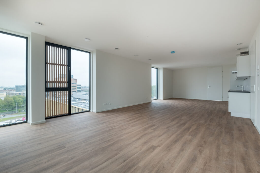 In een ruime woonkamer circa 52m² kun je met gemak een luxe zitgedeelte maken en een fijne eethoek. Heerlijk buiten zijn doe je op je eigen loggia. Daar proost je straks met een cocktail op the urban living experience. Hier zit je elk seizoen comfortabel door de overkapping. Met wat leuke planten en bloempotten heb je zo je eigen groene paradijs georganiseerd met waanzinnig uitzicht op het levendige Amsterdam.