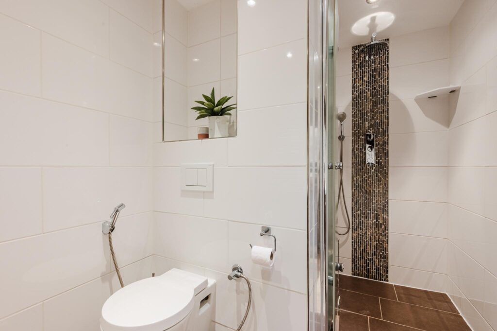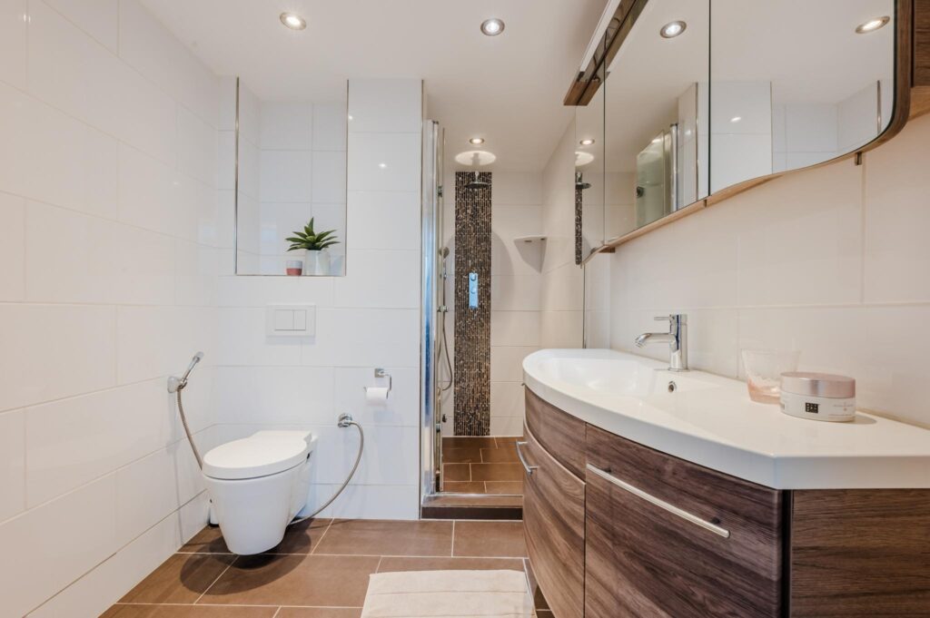 royale overloop met lichtkoepel, 4 ruime (slaap-) kamers. Moderne badkamer voorzien van douche, wastafelmeubel, design radiator en hangend toilet. Bergkast met opstelplaats voor cv.-ketel en warmtepomp. De verdieping is voorzien van een laminaatvloer.