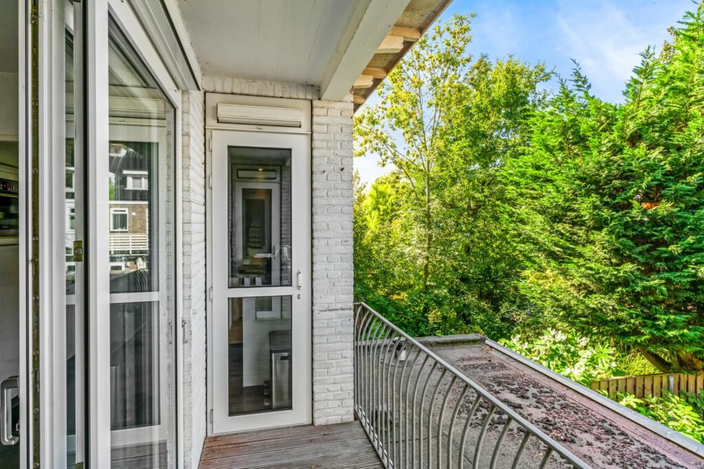 entree/hal, meterkast, hangend toilet en fontein, toegang tot de woonkamer. Royale woonkamer met veel lichtinval en toegang tot de 2 balkons. Vanuit de woonkamer is een slaapkamer aan de achterzijde bereikbaar. Ook is de praktische waskamer vanuit de woonkamer te betreden. De half-open keuken heeft een U-opstelling en is voorzien van diverse inbouwapparatuur, te weten; 5-pits gaskookplaat, rvs- afzuigkap, vaatwasser, koel-/vriescombinatie en combi-magnetron. De hal geeft toegang tot de tweede (slaap-/studeer) kamer. Zowel vanuit de keuken als de (slaap-) kamer is het balkon op de westkant te betreden.