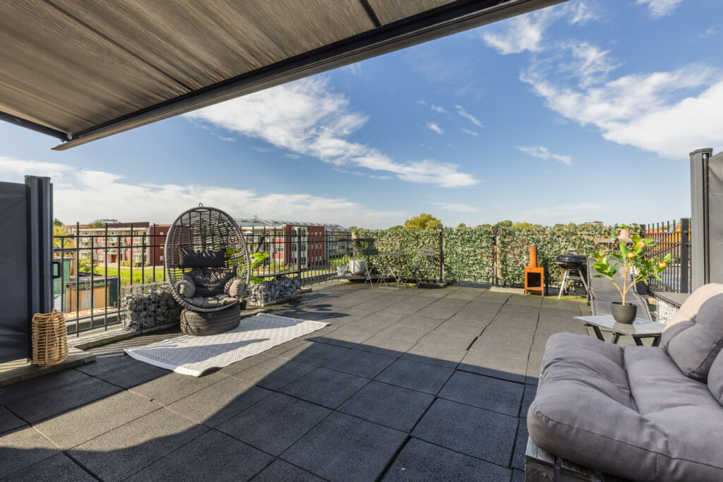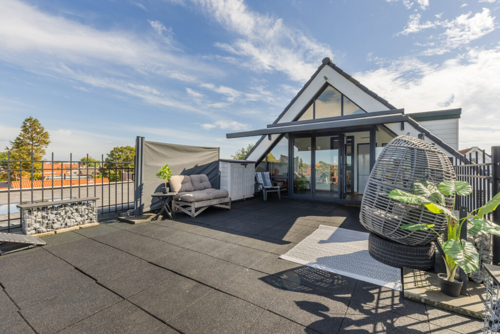– Groot zonnig dakterras met veel privacy;