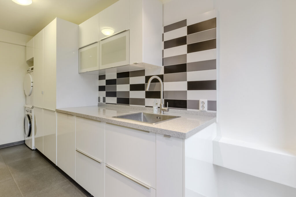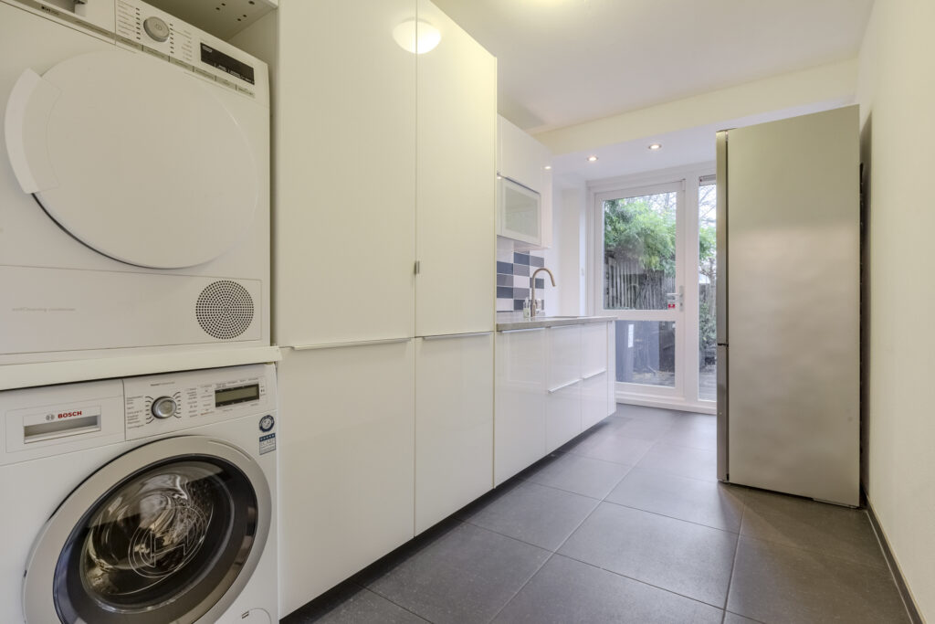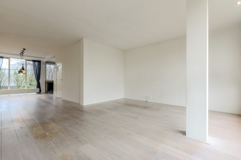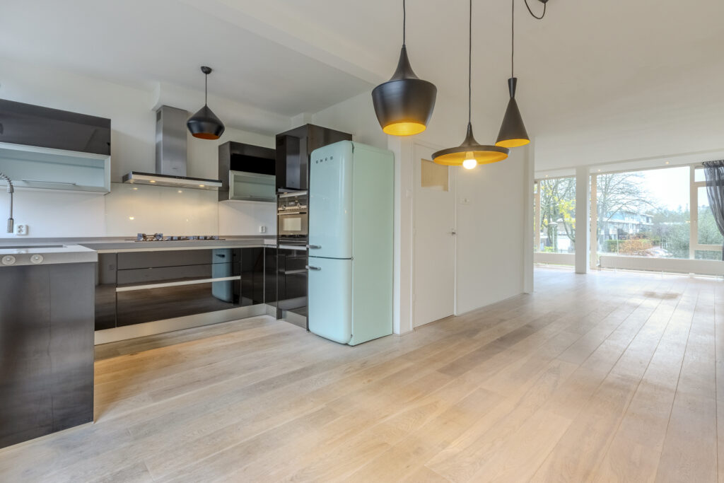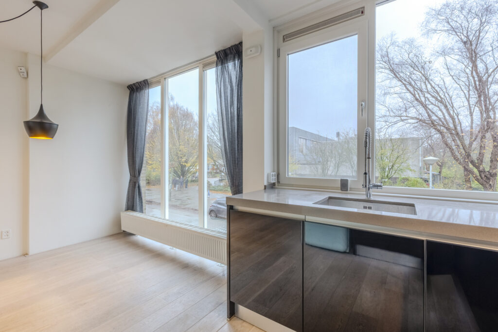 Een lichte, zeer goed bemeten woonkamer met grote ramen aan zowel de voor- als achterzijde. De keuken is uitgerust met diverse inbouwapparatuur en biedt veel opbergruimte. Een heerlijk leefgedeelte met uitzicht op de groene omgeving.