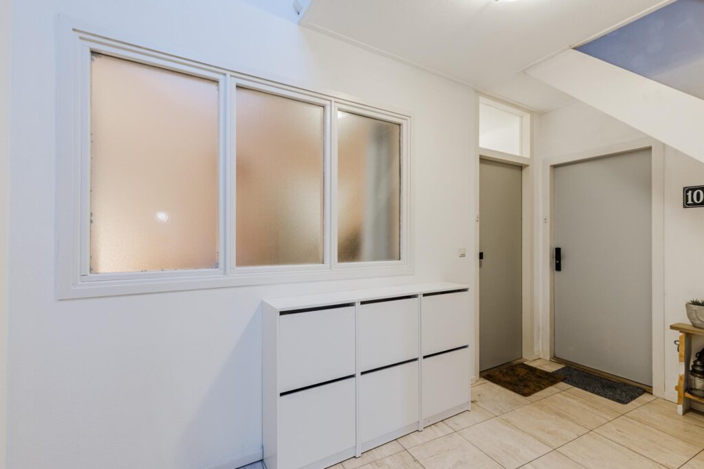 Central, closed entrance with intercom system, mailboxes, lift system, staircase and access to the storage room.