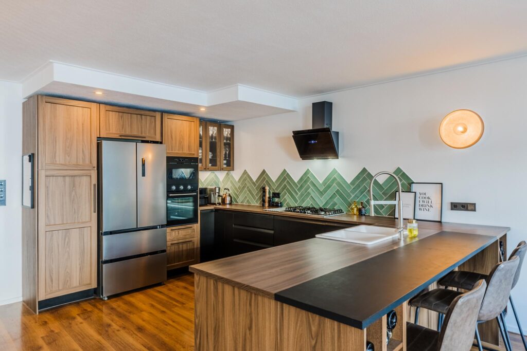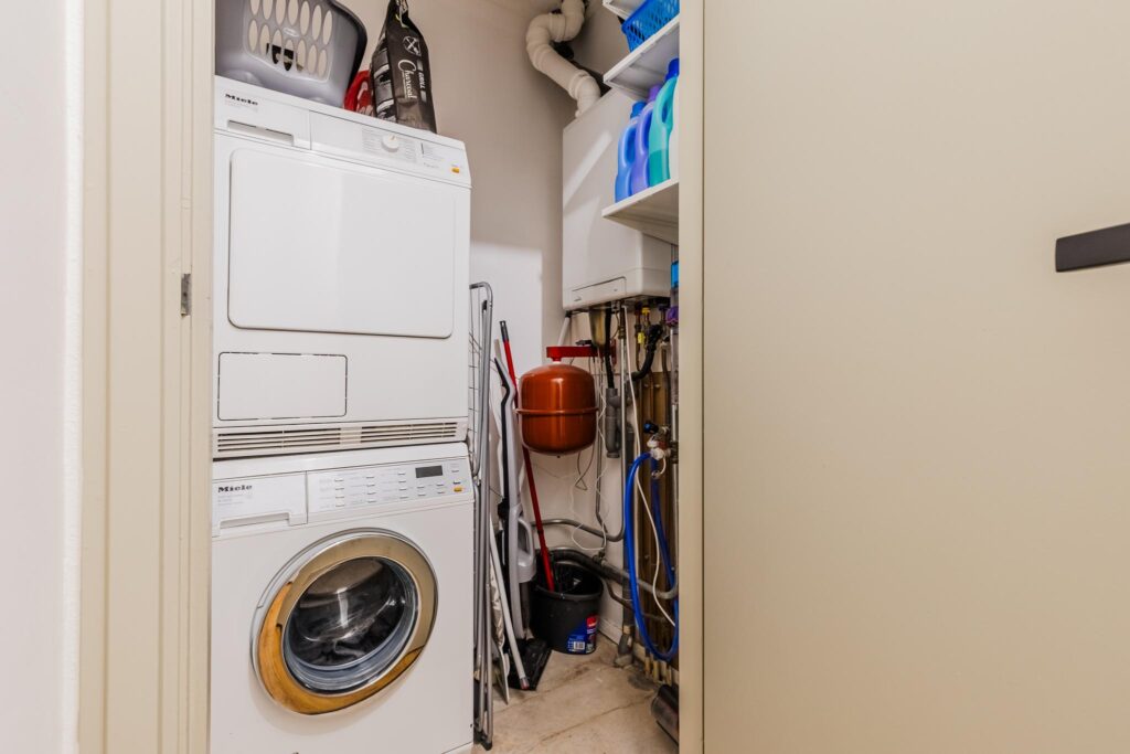 Spacious entrance hall with access to all rooms. The spacious and bright living room offers nice views over the “Zaanse” Dam and is equipped with many windows and provides access to the yet to be arranged (work) room. The modern open kitchen from 2023 with bar offers plenty of workspace and is equipped with various appliances, including a 5-burner gas hob, oven, microwave, dishwasher and separate American fridge/freezer. The bedroom is very spacious. The neat bathroom has a washbasin with cabinet, bathtub, walk-in shower and toilet. Also, from the hall you have access to the practical storage room/walk-in closet which is fitted with a custom-made cupboard which will be left for buyers. Next is a space for the central heating boiler installation and the connection for washing machine and dryer set-up.