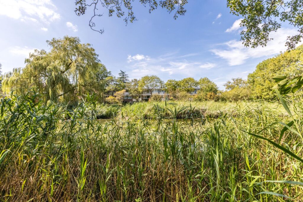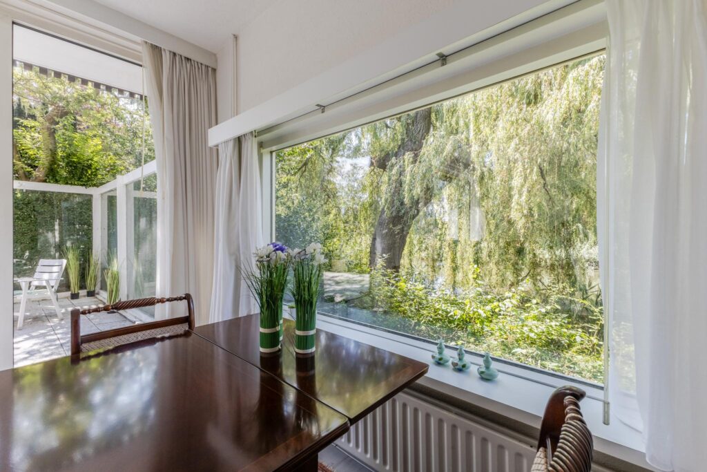 – vanuit woonkamer via zijraam uitzicht op fraaie waterpartij.