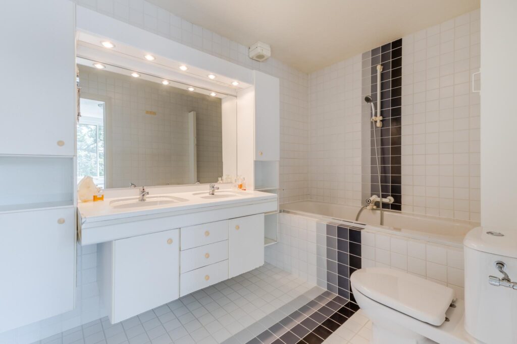 royale overloop met lichtkoepel, 3 ruime (slaap-) kamers waarvan 1 kamer met vaste kast en toegang heeft tot het balkon. Badkamer met ligbad annex douche, toilet, en dubbele wastafelmeubel. De verdieping is voorzien van vloerbedekking.