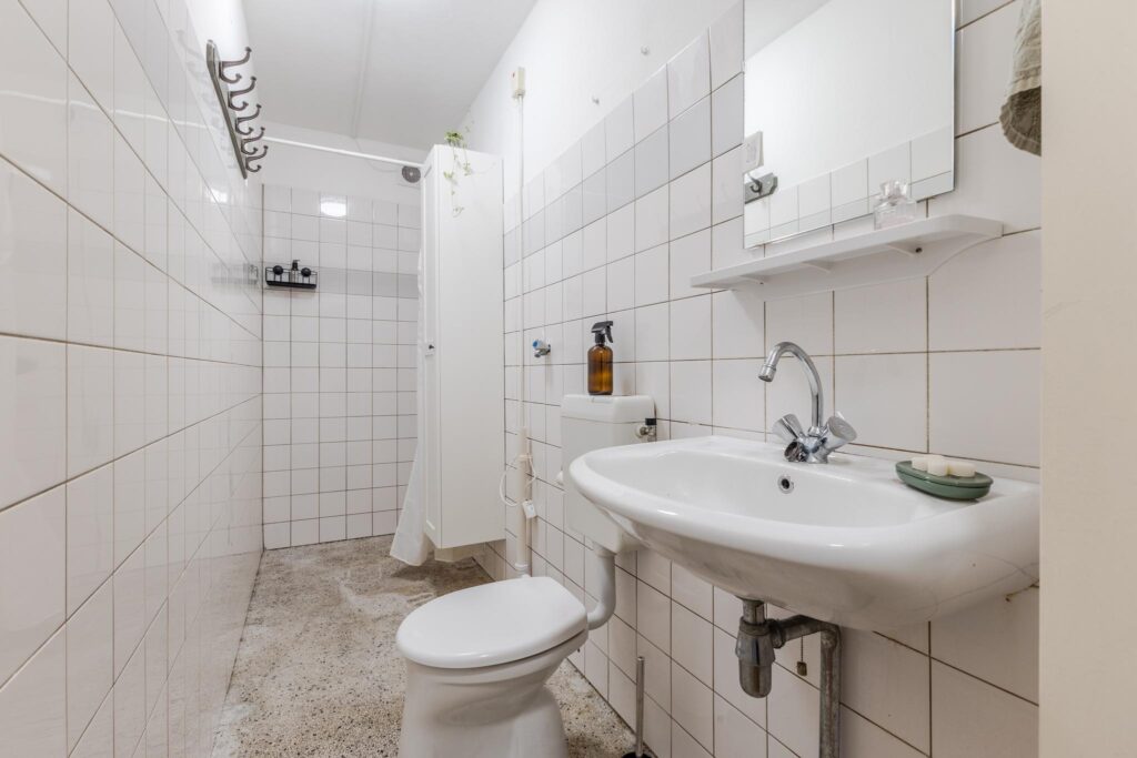 Eigen entree, hal met toegang tot de slaapkamer aan de voorzijde. Woonkamer aan de achterzijde met toegang tot de tuin. Keukenruimte met basis keuken. Badkamer voorzien van douche, toilet, wastafel en wasmachineaansluiting.