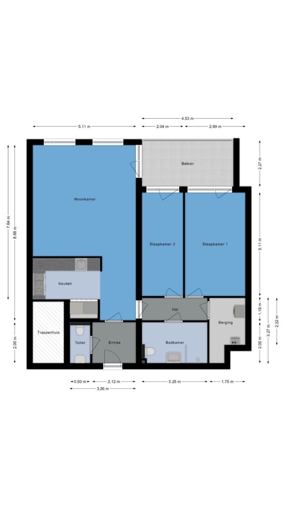 In combinatie met de foto’s, video en 3D tour geven we je hieronder alvast een beknopte indruk van het appartement.