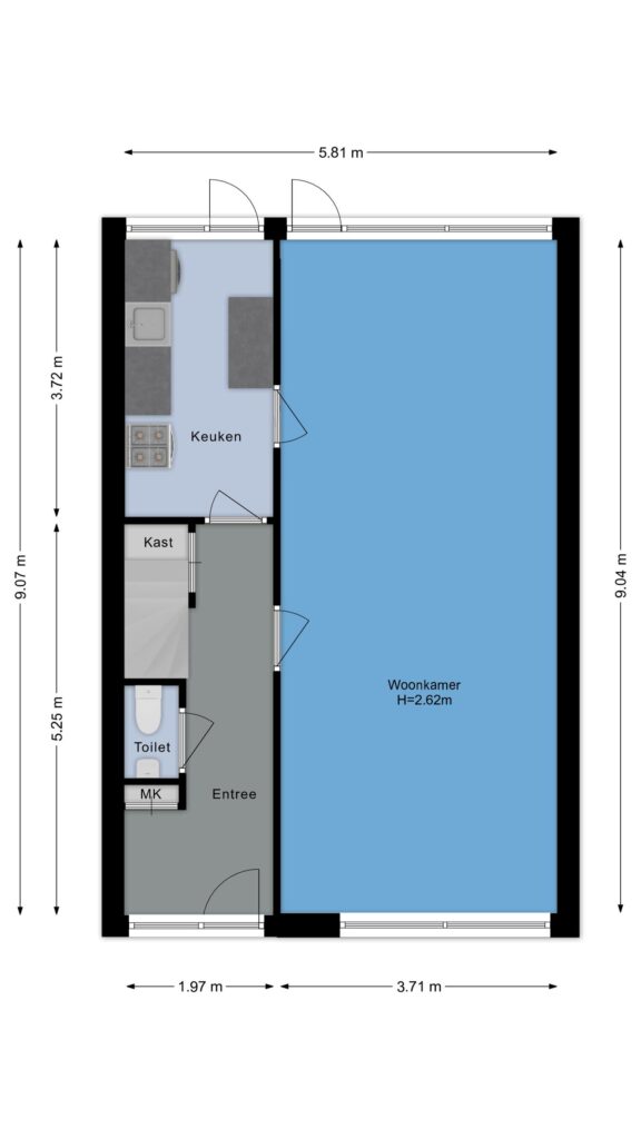 Via de voortuin bereik je de entree van de woning. Hal met meterkast, separaat toilet met fontein en trapopgang naar de eerste verdieping. Onder de trap bevindt zich een praktische trapkast. De woonkamer bevindt zich aan de rechterzijde van de woning en strekt zich uit over de volledige diepte, wat zorgt voor een zeer ruime en lichte leefruimte dankzij de grote raampartijen aan zowel de voor- als achterzijde. De keuken is afgesloten en gelegen aan de achterzijde van de woning voorzien van diverse inbouwapparatuur. Vanuit de keuken is er direct toegang tot de zonnige achtertuin.
