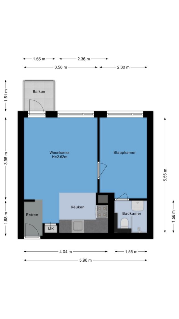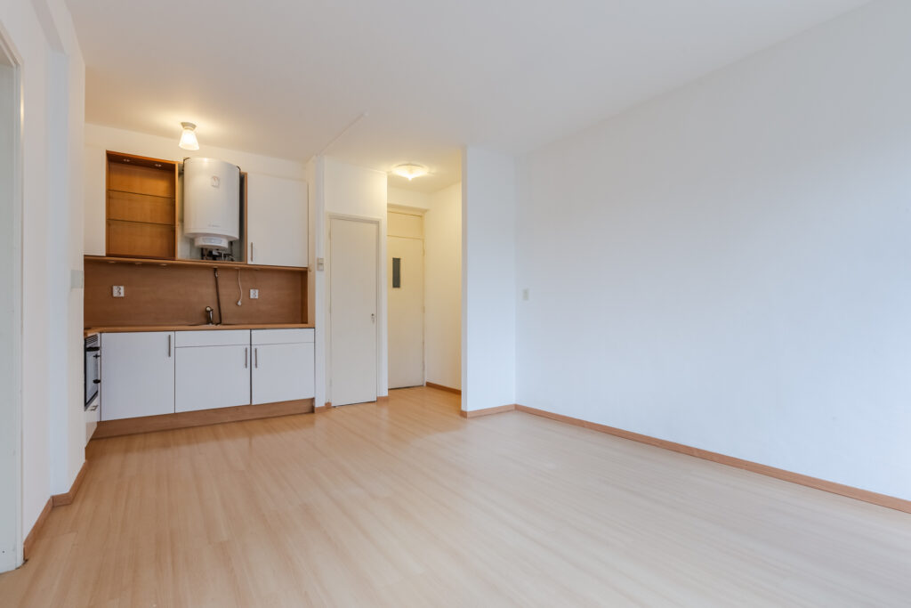 Entree/hal. Lichte woonkamer met toegang tot het zonnige balkon op het zuiden. Open keuken voorzien van diverse apparatuur met boiler en recent vernieuwde combi-oven. Via de woonkamer bereik je de slaapkamer. De badkamer is recent in 2025 compleet vernieuwd en is uitgerust met toilet, wastafelmeubel, inloopdouche en wasmachineaansluiting. De woning is geheel voorzien van dubbel glas en beschikt over een separate berging in de onderbouw.
