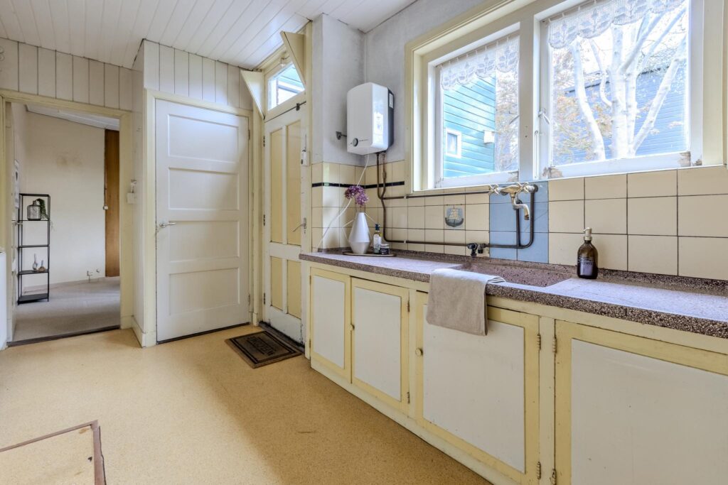 In an excellent location, you will find this detached house with generous living room/dining room, 3 bedrooms, home office and a sunny rear garden. It is obvious that this kind of property deserves owners who do not run away from major chores. The house needs to be modernised but it can certainly be turned into a very nice home!